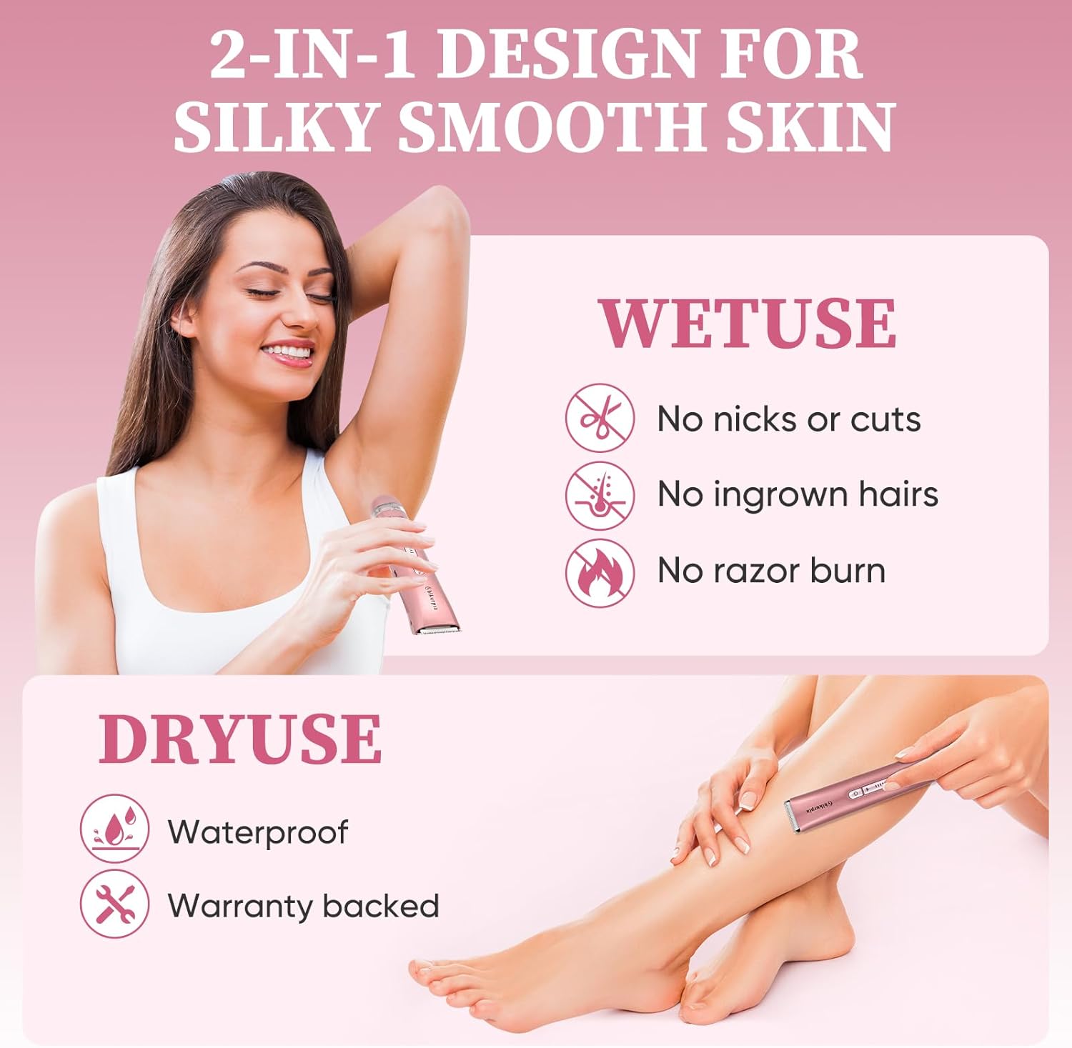2-in-1 Bikini Trimmer for Women – Ceramic Blade Facial & Body Hair Remover