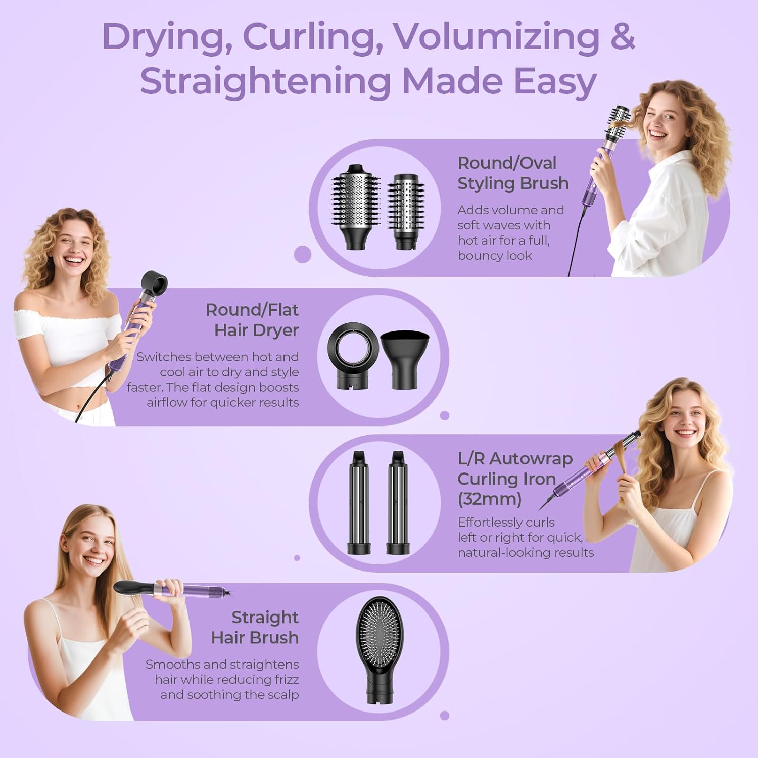 7-in-1 Ionic Blow Dryer Brush – 1500W Hot Air Styler for All Hair Types (Lilac)